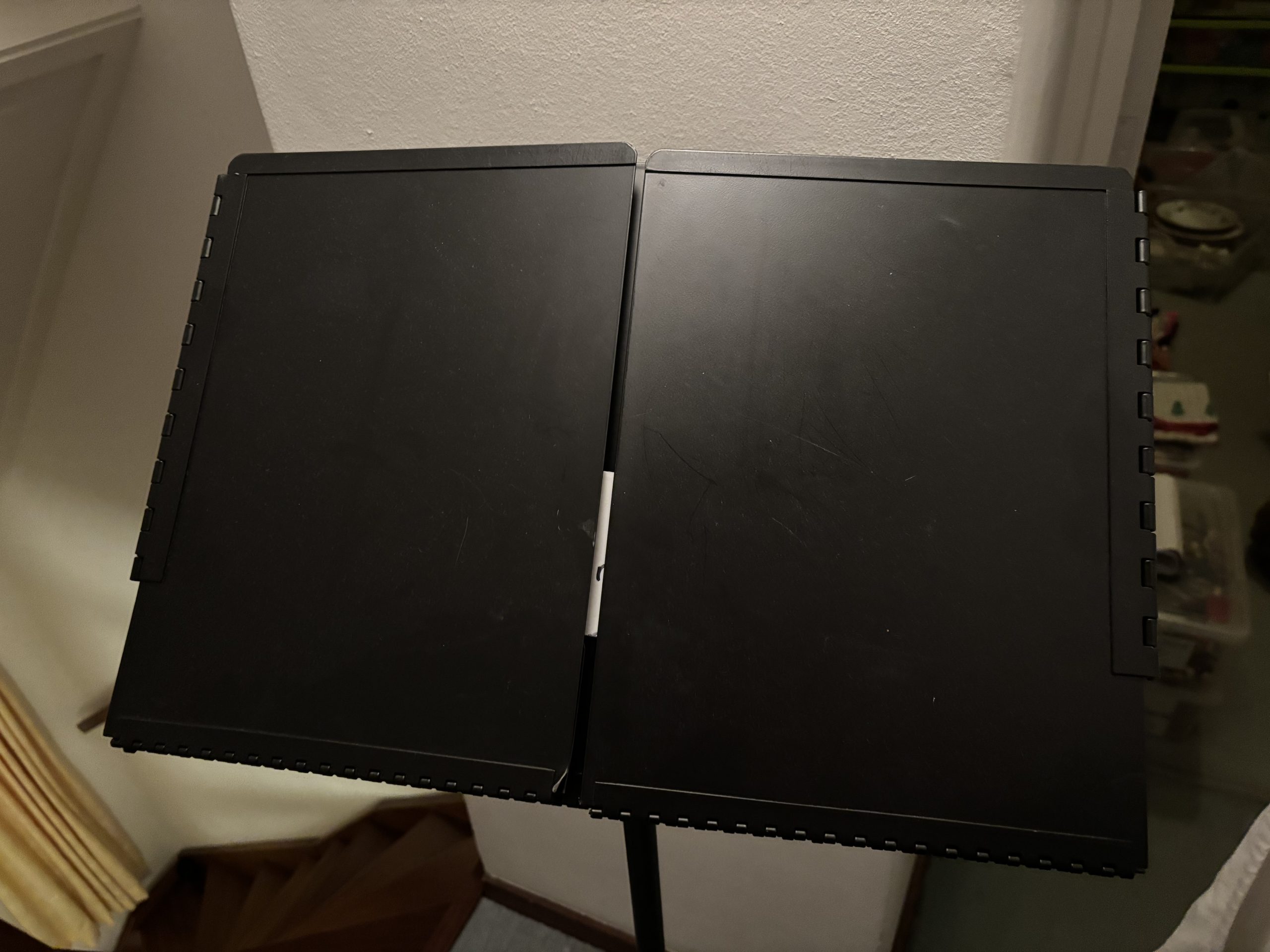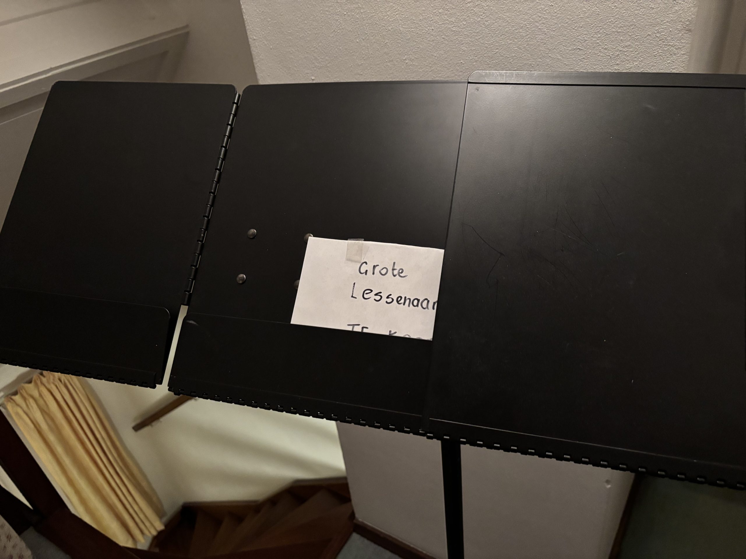 Zeer stevige extra brede metalen lessenaar. Ideaal voor dirigenten of gewoon als je meerdere pagina’s in 1 overzicht. Geen bladzijdes meer omslaan 😀
